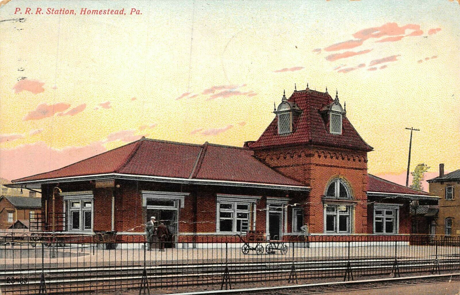 Homestead, PA-Postcard of Penn, Railroad Station and Tracks