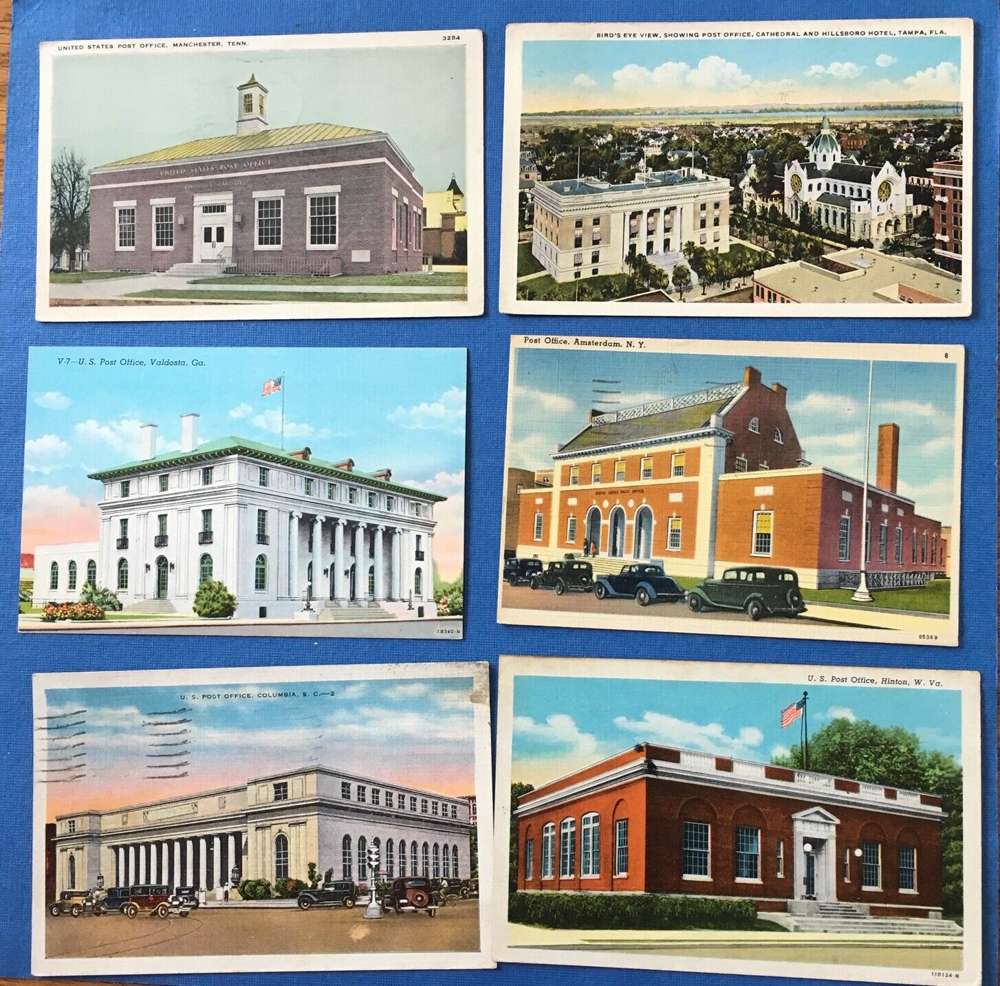 U. S. Post Office Postcards - Lot of 8 - TN GA SC FL NY WV KS CA