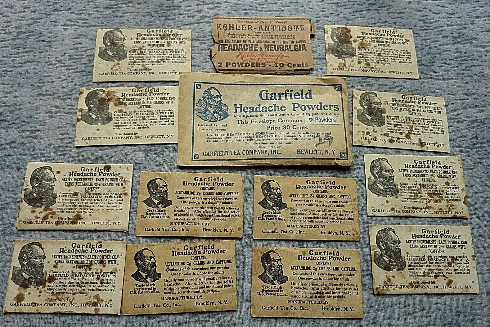 Title (ebay affiliate link): Antique 1800s Medicine GARFIELD HEADACHE POWDERS Lot