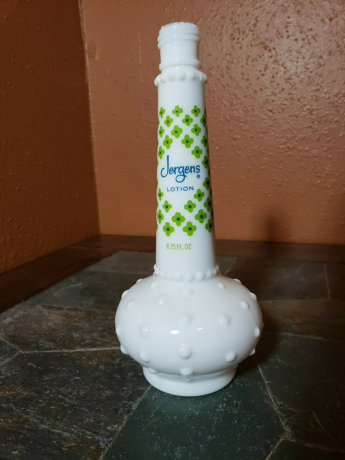 Title (ebay affiliate link): Vintage Jergens Lotion Bottle Milk Glass Hobnail Pattern Pump 8 Ounces Empty