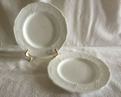 COLONY GLASS 2 Dinner Plates Grapes & Leaves White HARVEST MILK GLASS