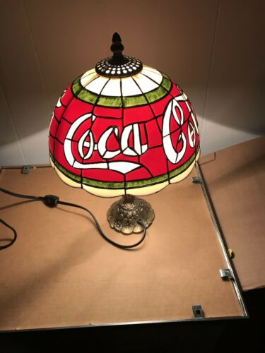 Title (ebay affiliate link): Tiffany Style Coca-Cola Stained Glass PLASTIC Table Lamp Vintage Look 16"