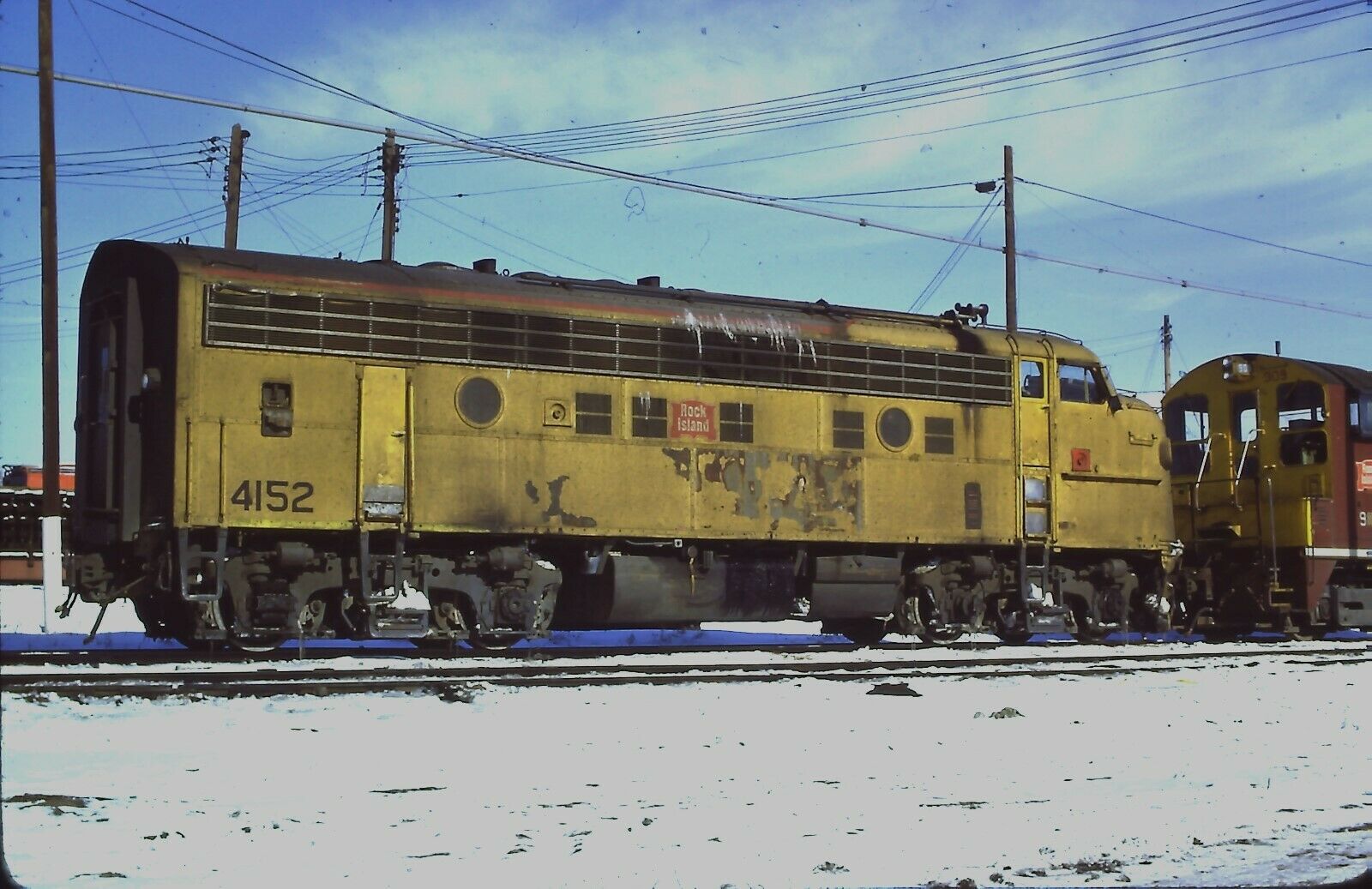 OrigSlide-CRI&P ROCK ISLAND RR #4152 EMD F7A (ex UP) at Des Moines IA on 2-7-75