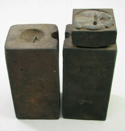 PAIR OF ANTIQUE TRIPLE DECKER WEIGHT DRIVEN CLOCK WEIGHTS PARTS