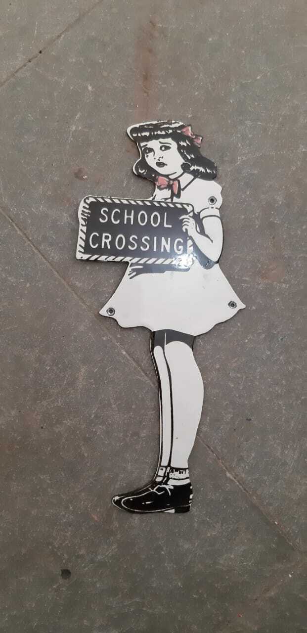 Title (ebay affiliate link): Porcelain School Crossing Enamel Sign Size 12" x 5.5" Inches