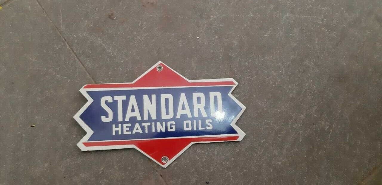 Title (ebay affiliate link): Porcelain Standard Heating oils Enamel Sign Size 8" x 5" Inches