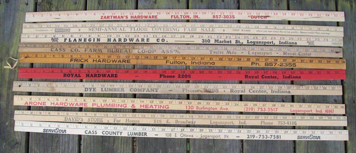 Title (ebay affiliate link): 10 VINTAGE HARDWARE STORE & RELATED ADVERTISING YARD STICKS, LOGANSPORT, INDIANA