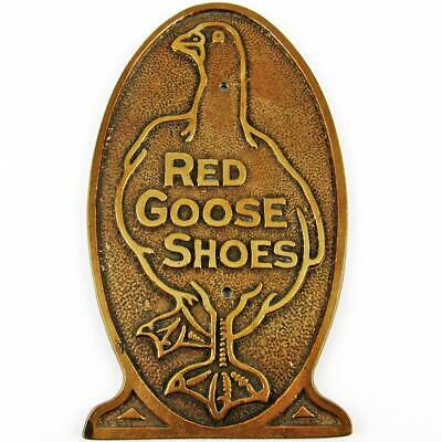 VINTAGE RED GOOSE SHOES ADVERTISING STORE DISPLAY BRASS PLAQUE