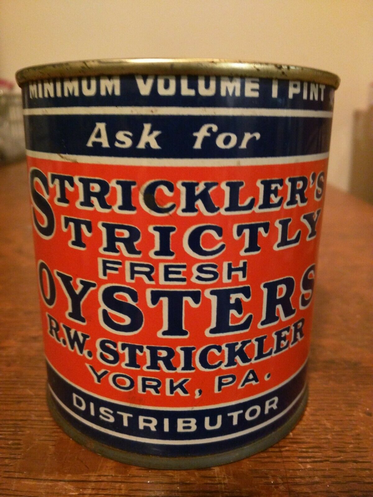 Vintage Stricklers Trictly Fresh Oysters Tin Can York PA from Crisfield MD Pint