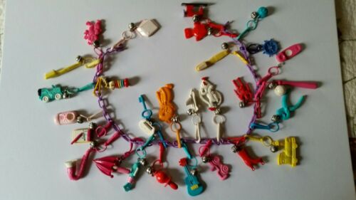 1980''s BELL CLIP CHARM NECKLACE WITH 28 PLASTIC CHARMS VINTAGE! Droopy