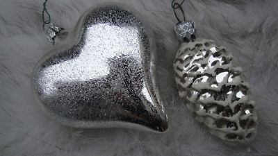 Vintage Antique GLASS Fir Cone & Heart XMAS ORNAMENT