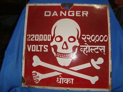 Old vintage porcelain Enamel Big Size Danger sign board from India 1930