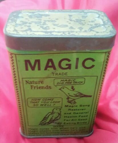 Title (ebay affiliate link): Old MAGIC Song Restorer Health Food Nature Friend NY Bird Seed Medicine Tin