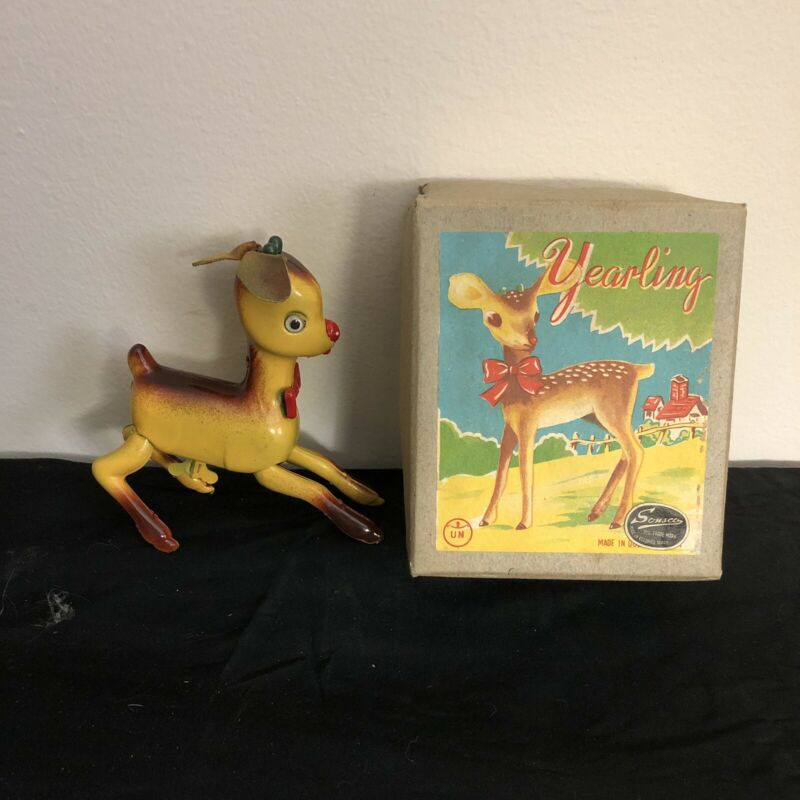 Title (ebay affiliate link): Vintage SONSCO Occupied Japan Wind Up Tin Toy Yearling Baby Deer w/ Box