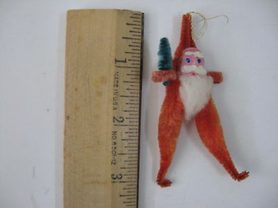Title (ebay affiliate link): Vintage Tiny Chenille Santa Claus Ornament Feather Tree