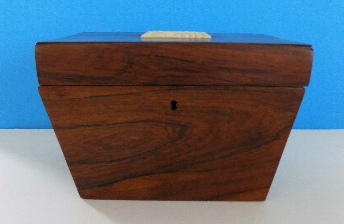 VINTAGE ANTIQUE WOOD BOX TEA CADDY, FLOWER IVORY ? DECOR