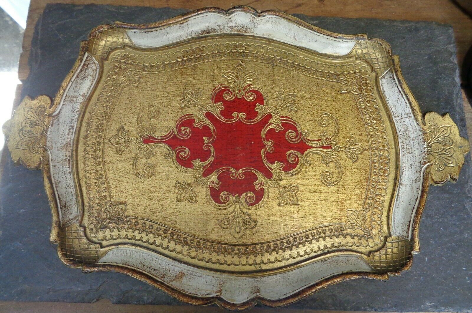 Title (ebay affiliate link): Vintage Gold and Red Florentine TOLEWARE Tray Holiwood Regency 11 1/2" by 17"