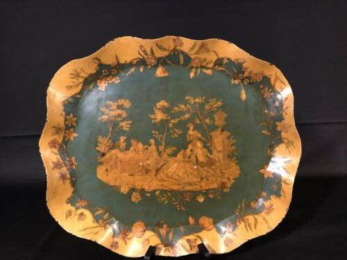 Antique Chippendale Tole Metal Hand Painted Victorian Designer Tray