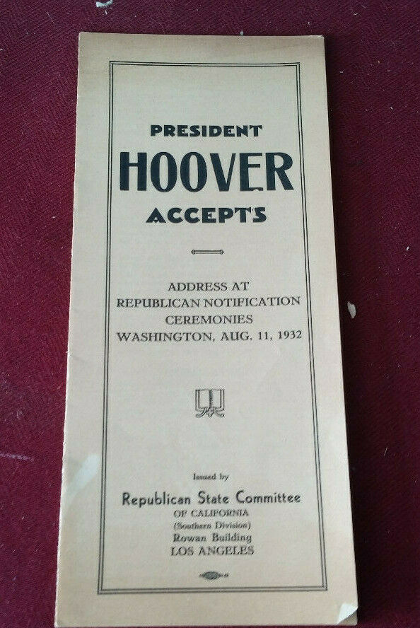 Title (ebay affiliate link): President Herbert Hoover Accepts Address Booklet Aug.11 1932 Issue California