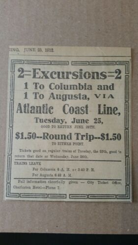 1912 Atlantic Coast Line Railroad ad June 25th