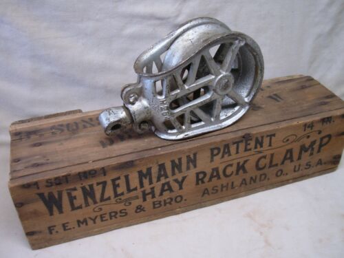 Title (ebay affiliate link): NICE VINTAGE ORIGINAL FINISH MYERS H254 CAST IRON HAY TROLLEY CENTER DROP PULLEY