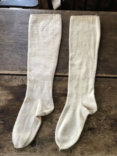 Title (ebay affiliate link): Early Antique Tall Ladies Hand Knit Wool Socks Stockings AAFA Textile #2