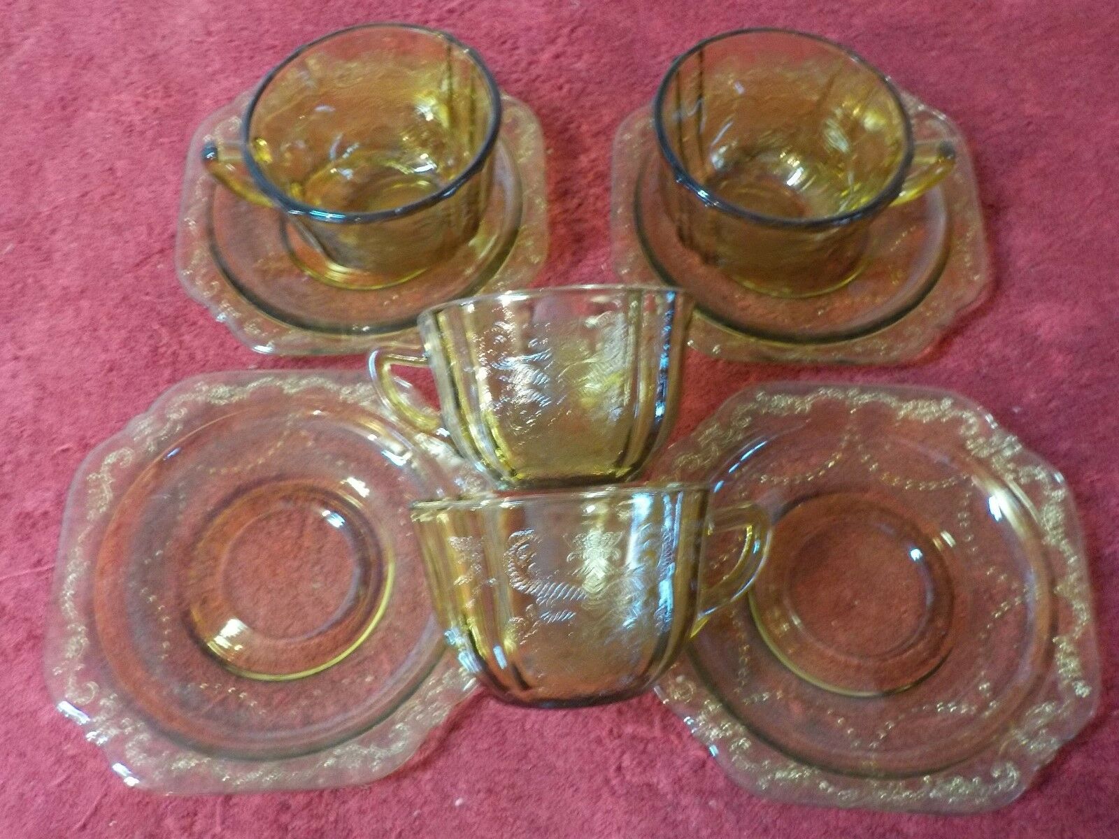 Title (ebay affiliate link): Set of 4 Amber Federal Depression Glass Madrid Cups and Saucers (JS)