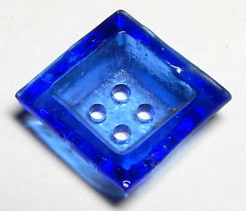 VINTAGE 1930''S TRANSPARENT COBALT BLUE DEPRESSION GLASS BUTTON ~ 5/8" SQ.