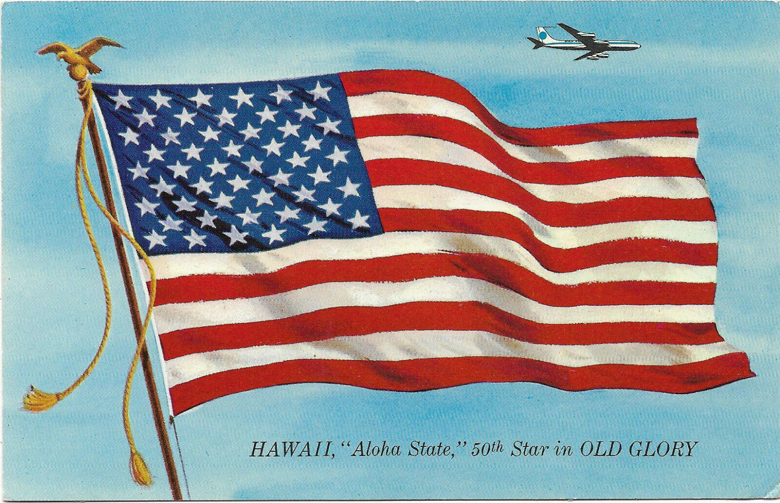 Vintage chrome postcard, patriotic Pan American airlines, American Flag, Hawaii