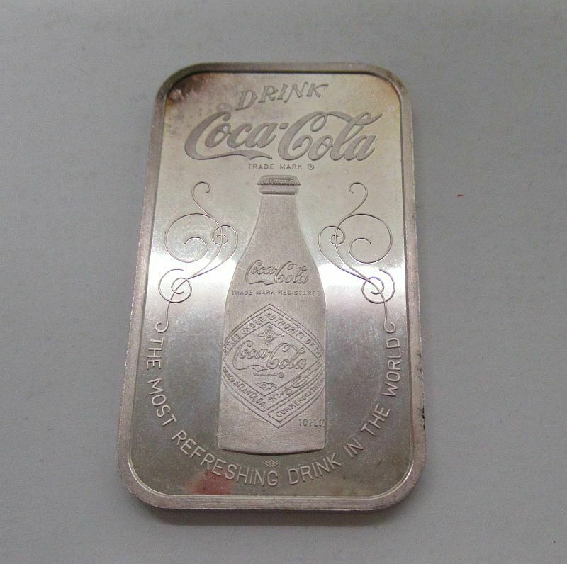 Title (ebay affiliate link): Coca Cola 75th Anniversary 1 Troy Oz .999 Pure Fine Silver Bar hj4868