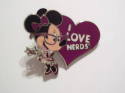 Title (ebay affiliate link): Minnie Mouse "I Love Nerds!" with Heart Disney Pin Cute