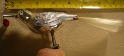 VTG. GLASS BIRD ON CLIP CHRISTMAS TREE ORNAMENT