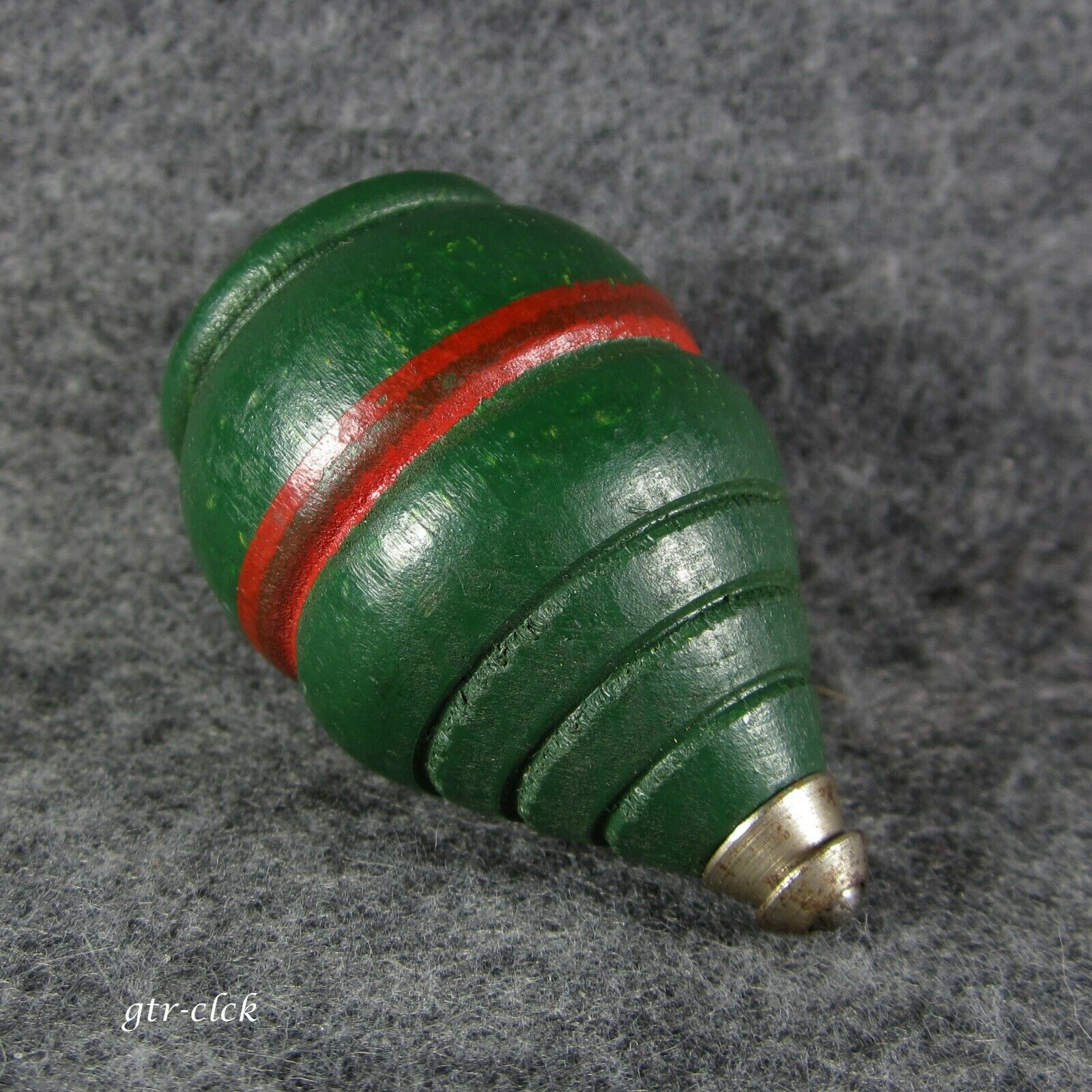 Title (ebay affiliate link): AWESOME VINTAGE RED BANDED GREEN WOODEN TOP . SPINNING TOP TOY . 2-1/4" . #0326A