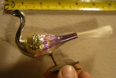 VTG.GLASS BIRD ON CLIP CHRISTMAS TREE ORNAMENT