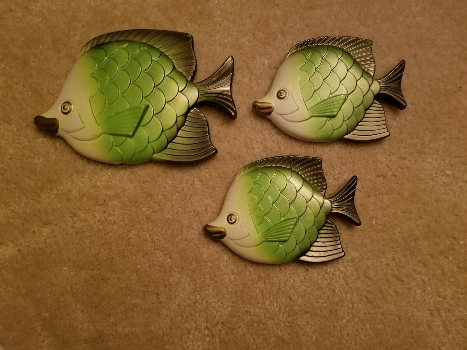 Title (ebay affiliate link): 3 Beautiful Iridescent Green and Black Chalkware Fish - 1977 Miller Studios