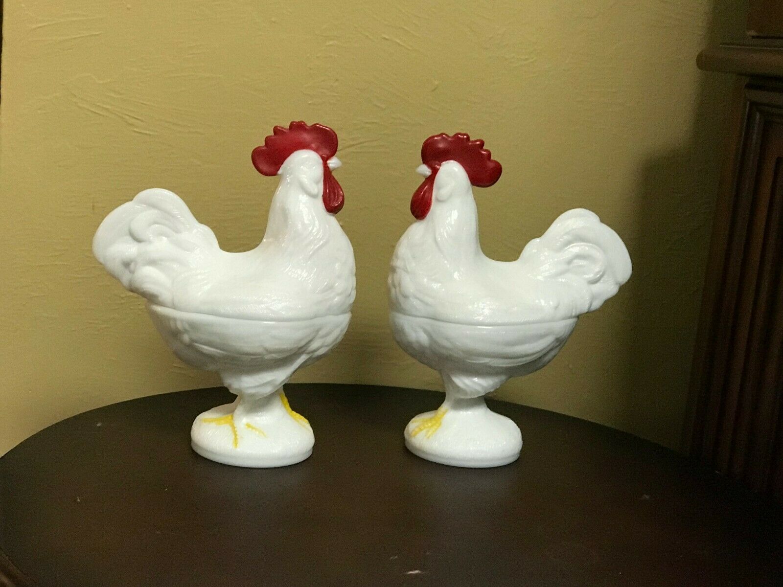 Title (ebay affiliate link): Vintage Milk Glass Standing Roosters 2, covered Dish Great Shape