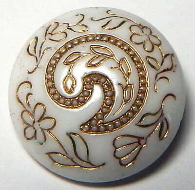 ANTIQUE 19th CENTURY VICTORIAN MILK GLASS BUTTON w/ORNATE GOLD LINE DESIGN