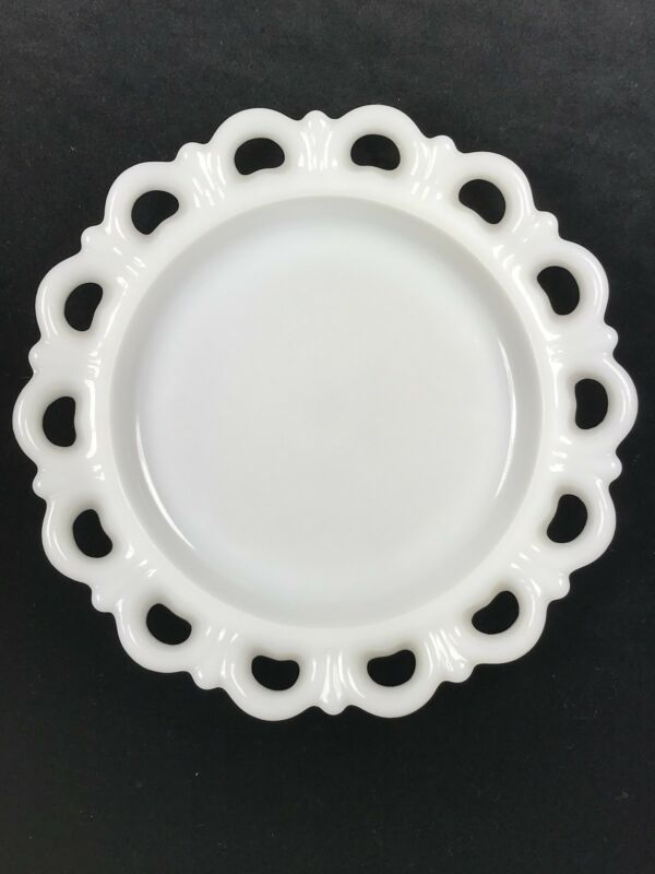 Title (ebay affiliate link): Vintage White Milk Glass Lace Edge Scalloped Candy Dish 8" Collectible