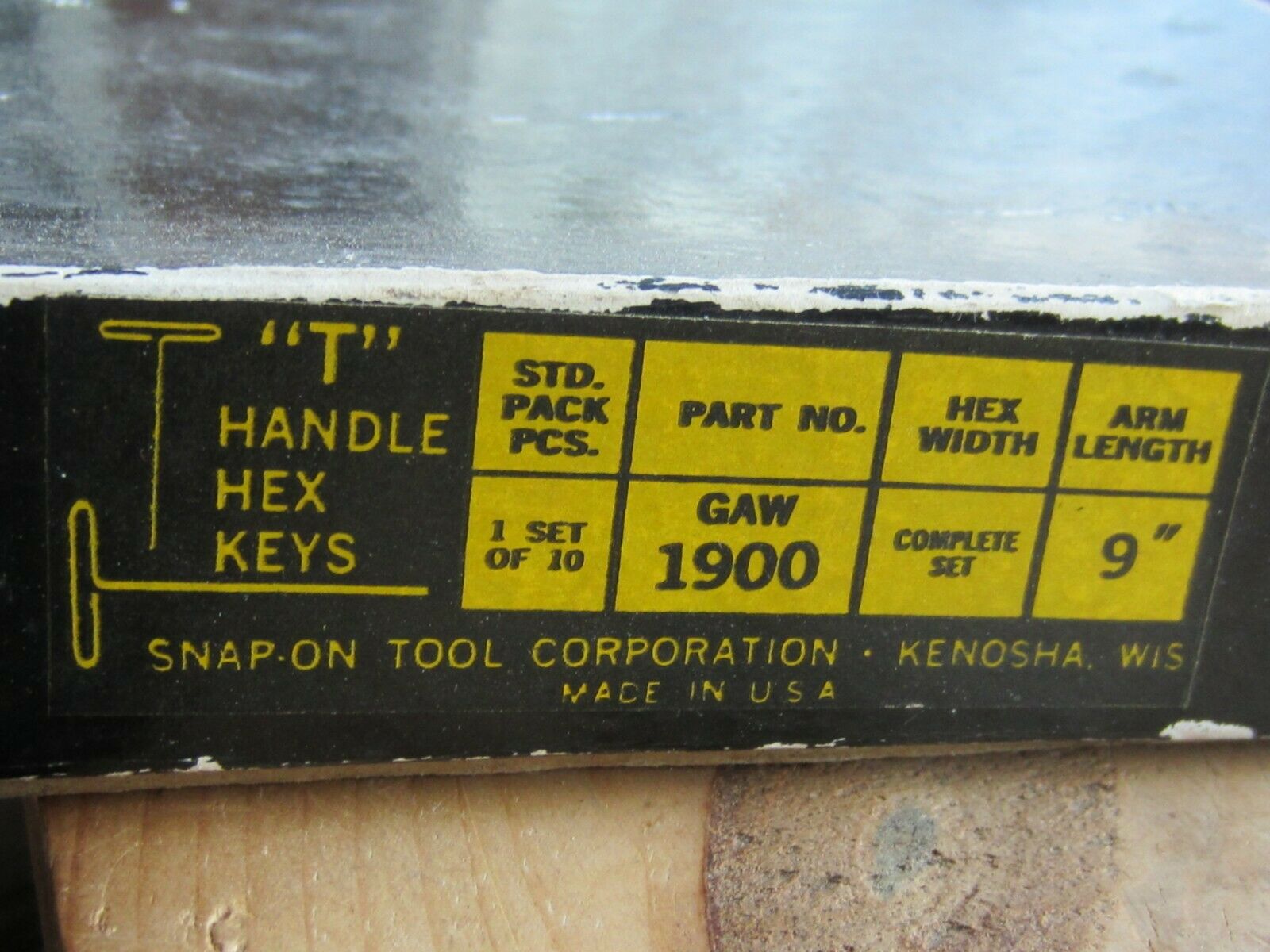 snap-on eklind "T" handle hex keys 9" set of 10 tools allen head kenosha wis USA