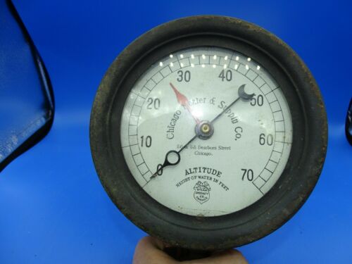 Antique Brass & Cast Chicago Heater & Supply Co. Altitude Gauge Steam Punk Gauge