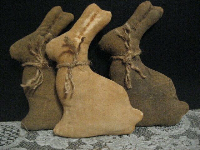 Title (ebay affiliate link): Primitive Easter Set of 3 Easter Bunny Bowl Fillers 2 Chocolate 1 White Grunged
