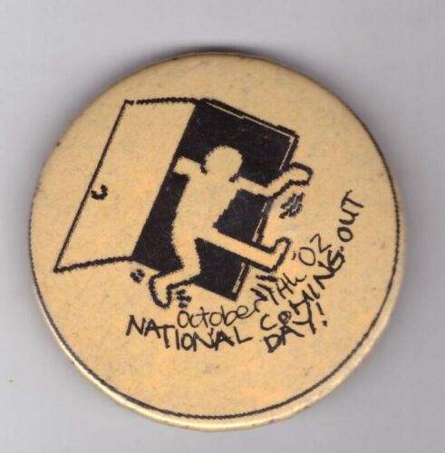 Title (ebay affiliate link): 2002 GAY AND LESBIAN RIGHTS LBGTQ "NATIONAL COMING OUT DAY" CAUSE 2 1/4" CELLO