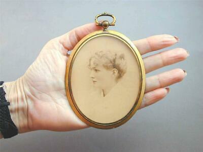 Antique Oval Metal Wall Picture Frame Convex Glass W Photo Beautiful Woman NR
