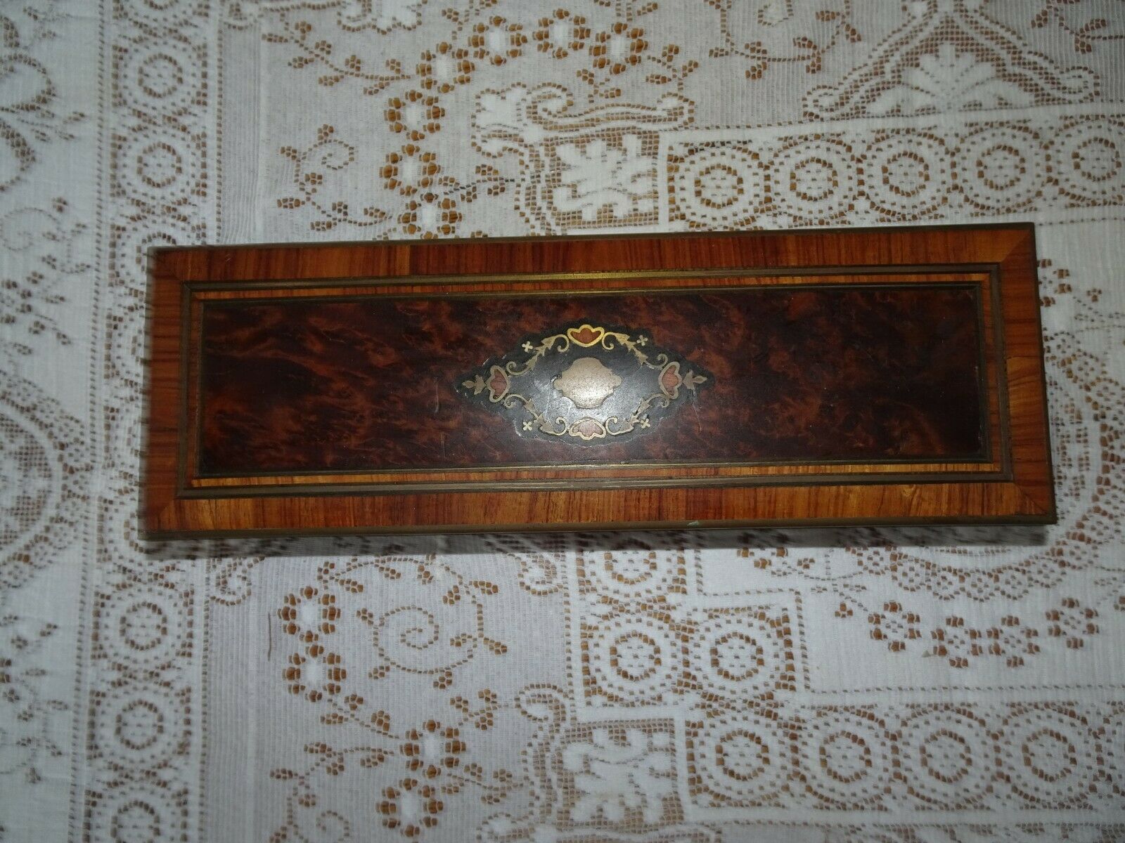 Title (ebay affiliate link): Antique Wood Victorial French Burl Motif Box Hinged Inlaid Design Lock No Key