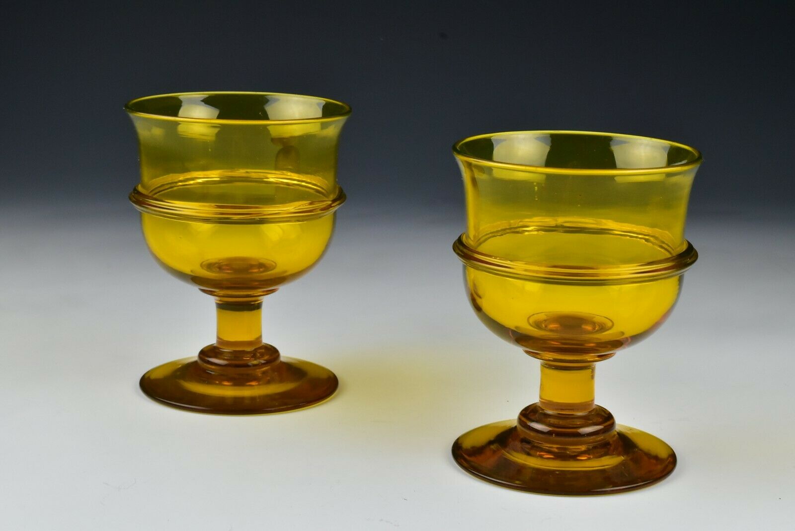 Title (ebay affiliate link): Pair of 19th Century Amber Flint Pittsburgh Glass Goblets w/ Applied Work