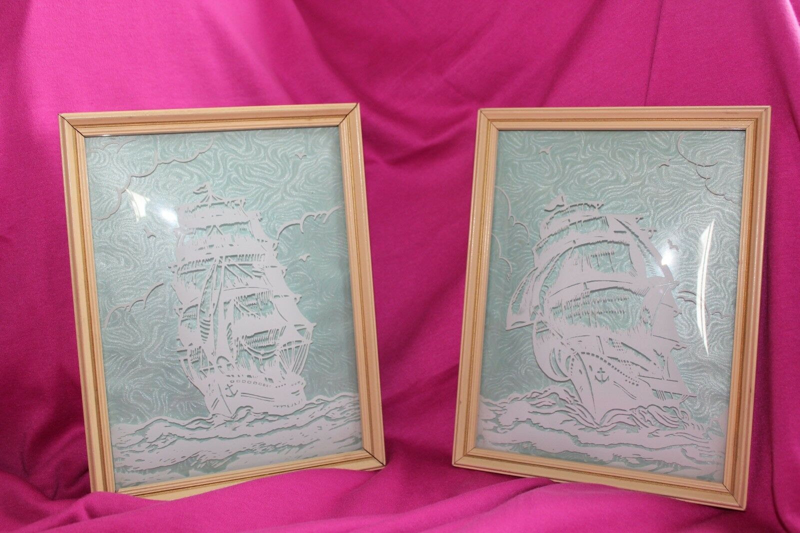 Vintage Reverse Painting on bubble/convex glass, Clippers set of 2