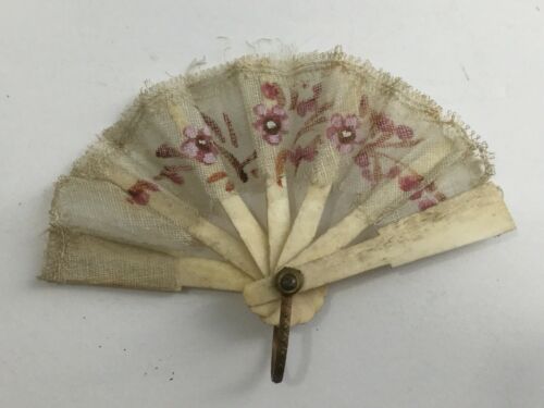 Antique Miniature Victorian German Or French Porcelain Doll Painted Hand Fan
