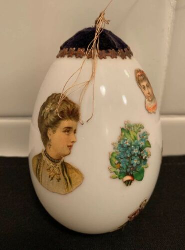Antique Vintage Kugle Milk Glass Christmas Dresden Die Cut Easter Egg Ornament
