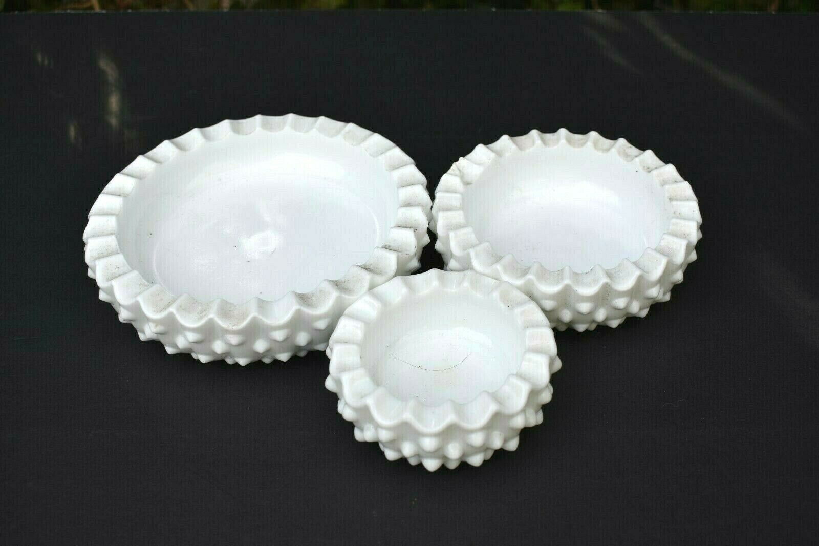 Milk Glass Fenton Hob Nail 3-pc Set Jelly-Jam-Relish Table Ware Bright White