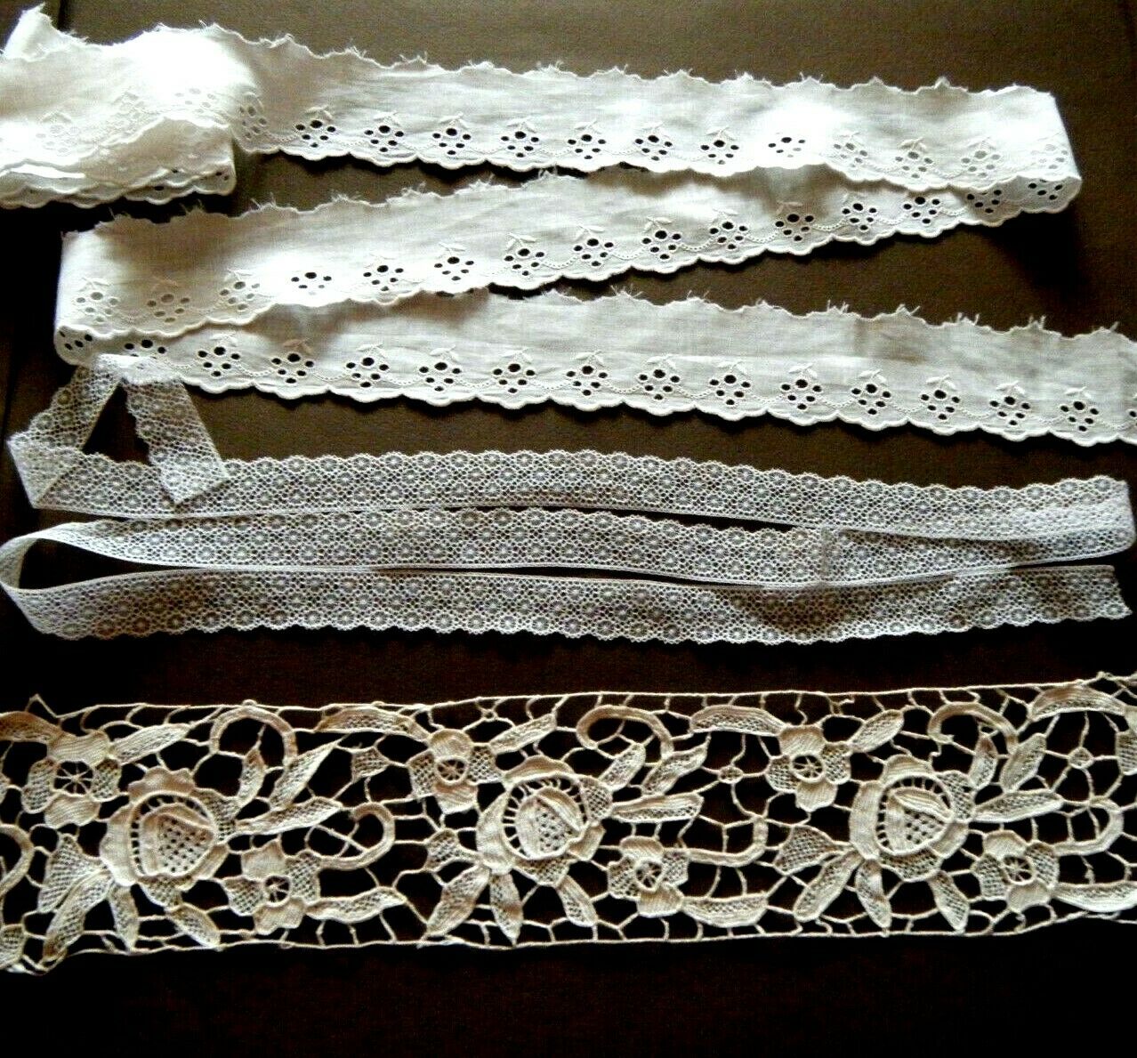 Lot of 3 Assorted old Antique fine trims pure cotton dolls bears some yardage